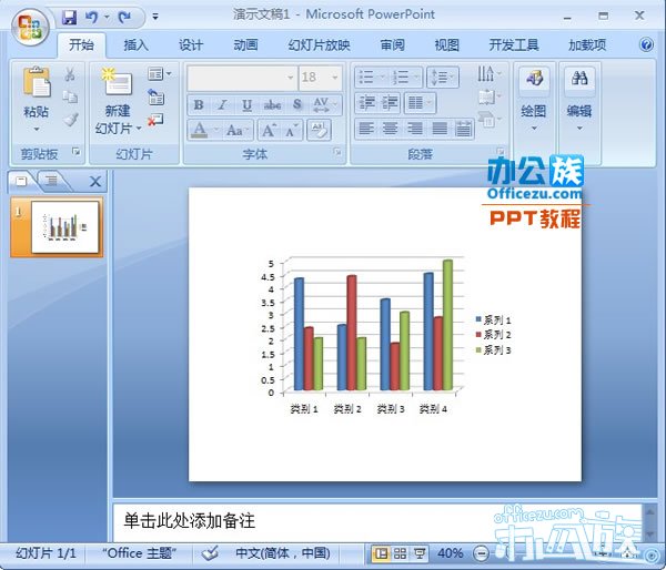 第一步:首先是启动PowerPoint2007,插入一张图表进去。