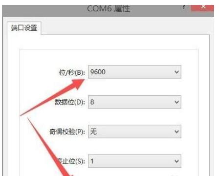 来到端口设置;位/秒要设置为9600,数据流要设置为无,点击确定;